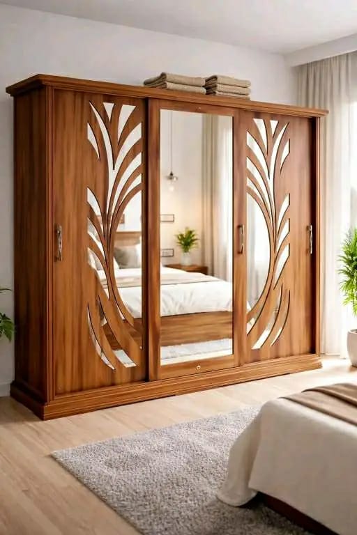 Armoir élégante et robuste equipée de 3portes offrant un grand espace de rangement pour vêtement et accessoire son designe moderne et épure s'adapte parfaitement à tout type de chambre couleur marron dimension 2m10/2m
