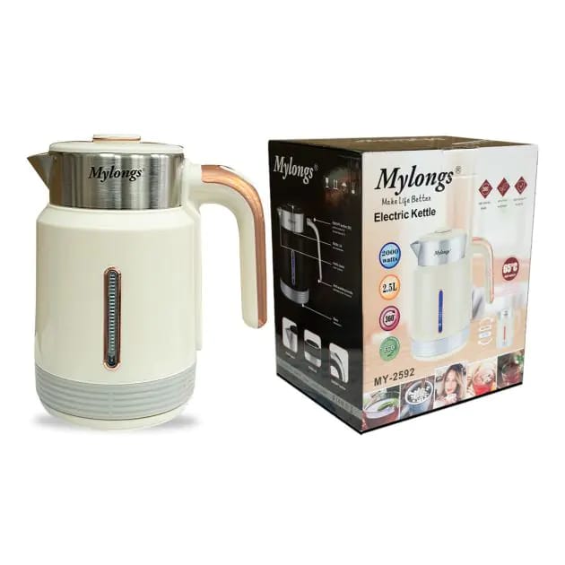 chauffez votre rapidement et facilement avec la bouilloire mylongs 1500W pratique et facile à utiliser elle est idéal pour prèpare thé café ou soupé , pratique rapide