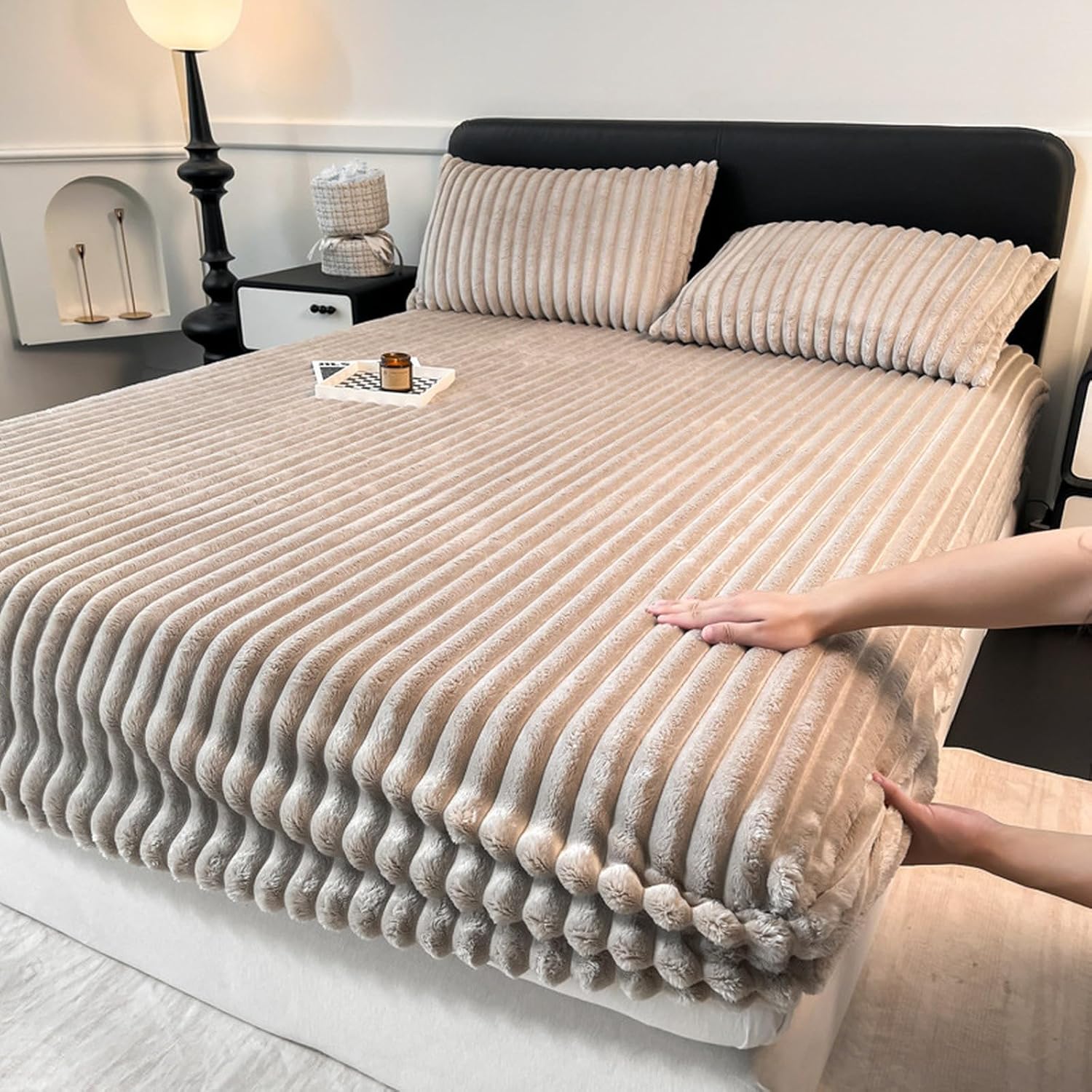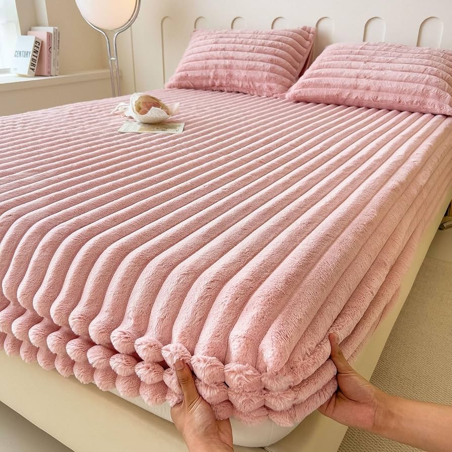 Housse matelas en polaire de lapin avec 2 taies d 'Oreiller. housse 3 place , 180/200cm