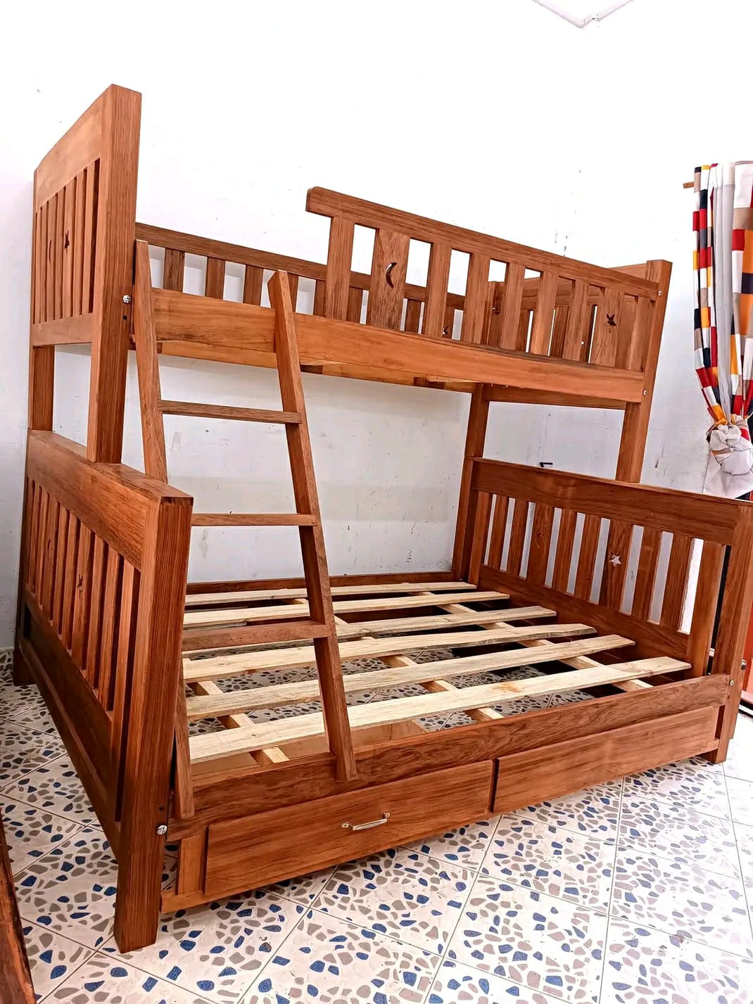 Lit superpose en bois palissandre solide et de haute qualite avec tiroir de rangement en bas et designe moderne idéal pour économiser de l'espace et parfait pour la chambre des enfants