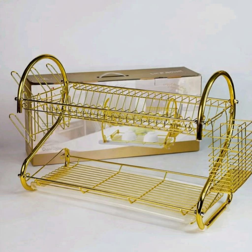 Garde votre cuisine bien organisé et propré grâce à cet égouttoir à vaisselle pratique avec ses 2 niveau il offre assez d'espace pour assiette verres et ustensiles fabrique en métal solide et résistant à la rouille!