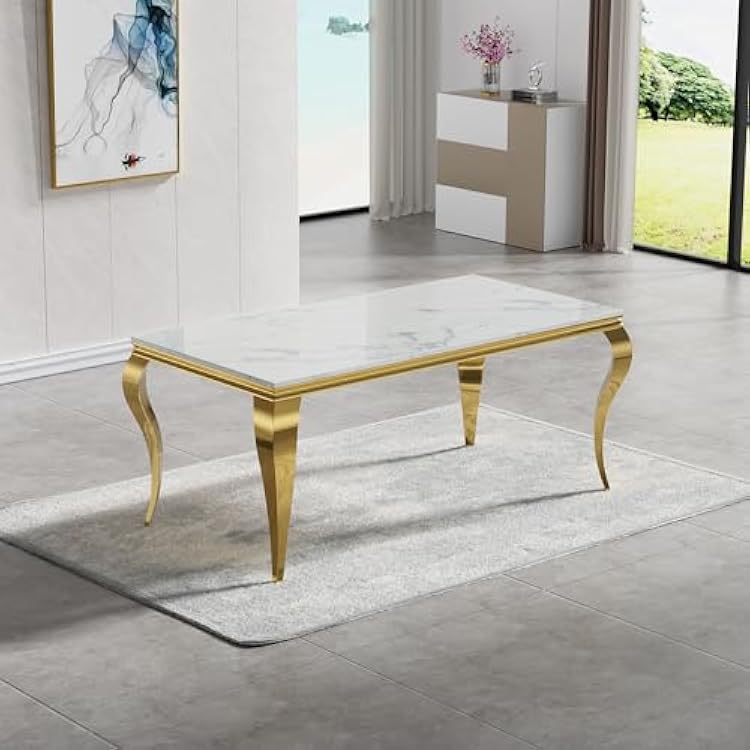 Table a manger 6 place , style luxe moderne structure métallique dorée solide designe chic et contemporain