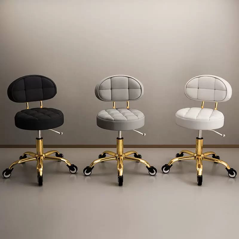 tambouret designe dore superbre tambouret à roulette au style moderne et raffiné idéal pour les salon de béaute , assise ronde en cuir synthétique confortable et facile à nettoyer , base en métale doré avec 5 roullete